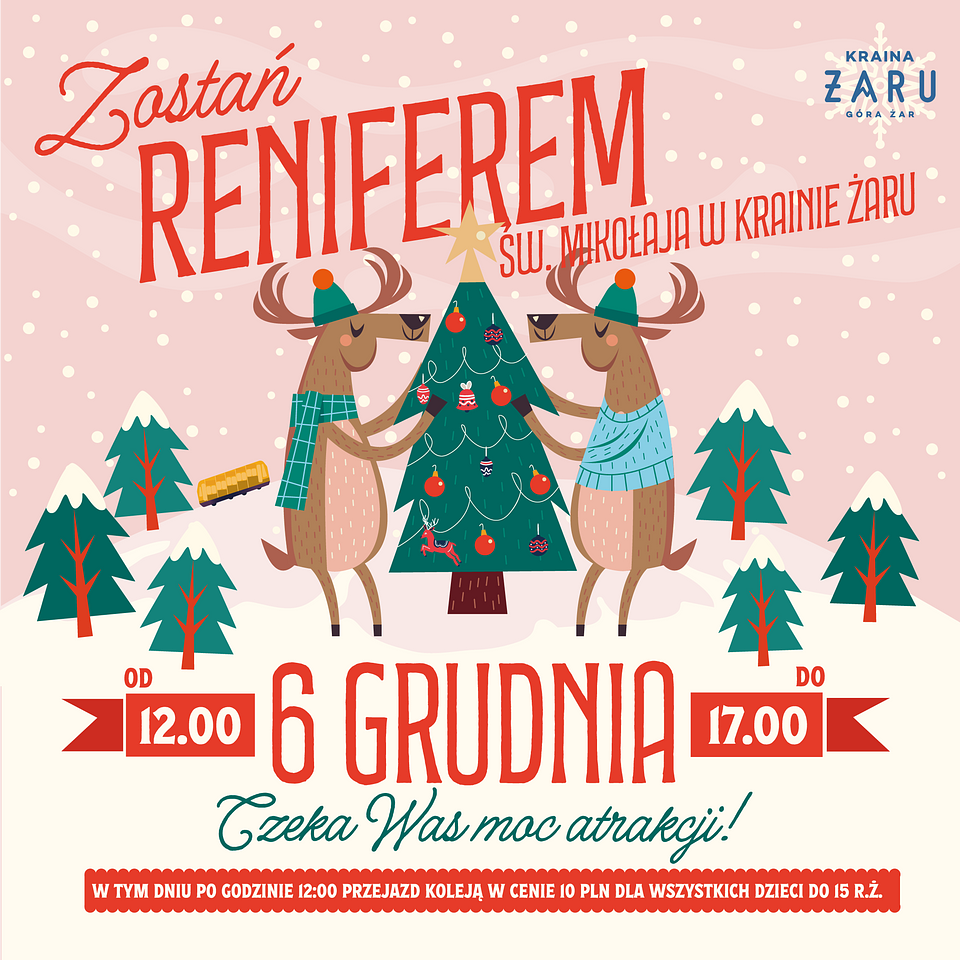 Na Górze Żar przez cały sezon zimowy dostępna będzie Kraina Żaru. Warto ośrodek odwiedzić 6 grudnia i skorzystać z atrakcji dla dzieci i całych rodzin! W programie wydarzenia zaplanowane są m.in. słodkie niespodzianki, tworzenie najdłuższego łańcucha choinkowego, mikołajkowa jazda na quadach, konkurs na największą kulę śnieżną i poszukiwania nosa renifera Rudolfa. W tym dniu po godz. 12:00 przejazd kolejką dla dzieci do 15 lat będzie dostępny w cenie 10 zł.