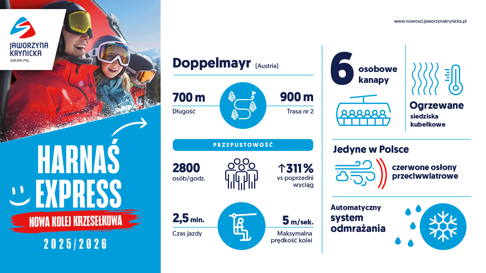 - Zapraszamy wszystkich narciarzy i snowboardzistów na ogólnopolskie otwarcie sezonu na Jaworzynę Krynicką! Zapewniamy weekend dobrej zabawy na stoku oraz m.in. w naszej strefie après ski, gdzie na gości czekają niespodzianki muzyczne. Przed nami zima pełna nowości narciarskich. W ostatnich latach co sezon otwieramy na Jaworzynie Krynickiej nowe atrakcje. Po 4 osobowej „Siódemce” i 6 osobowej „Jaworzynie Express”, w tym roku naszą najnowszą propozycją dla narciarzy jest 6 osobowa kolej krzesełkowa „Harnaś Express”